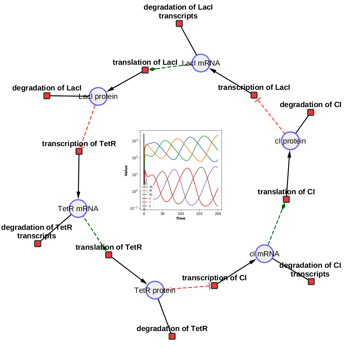 Matthias König : Uses SBML and time course simulation to produce animated pathway (using cy3sbml & roadrunner).